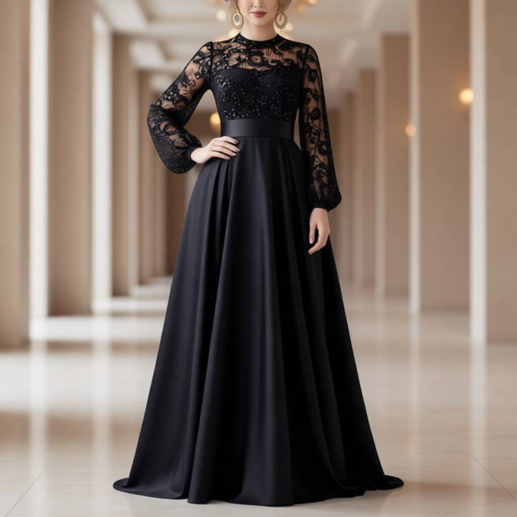 پیراهن ماکسی پولک برجسته و دامن کلوش ساتن آمریکایی. 38 تا 48