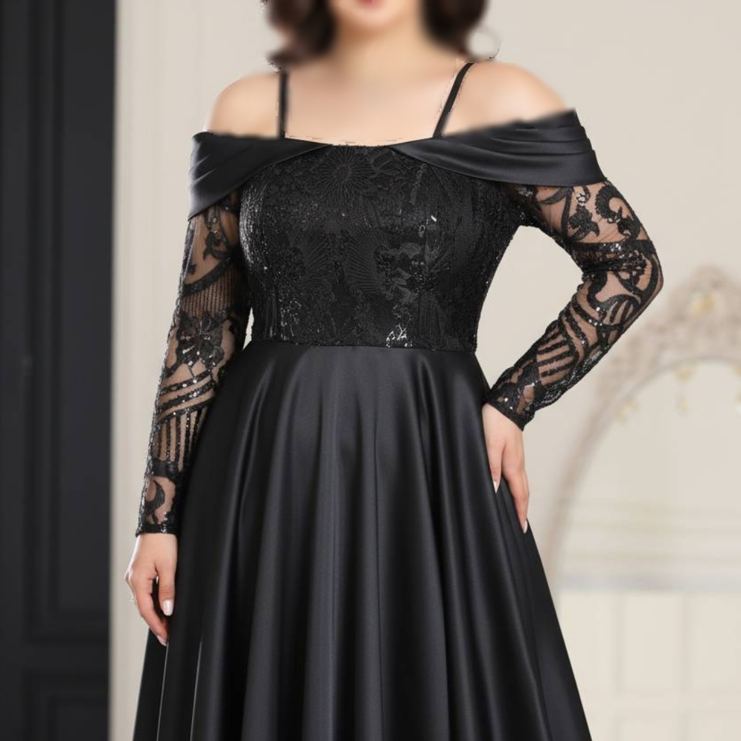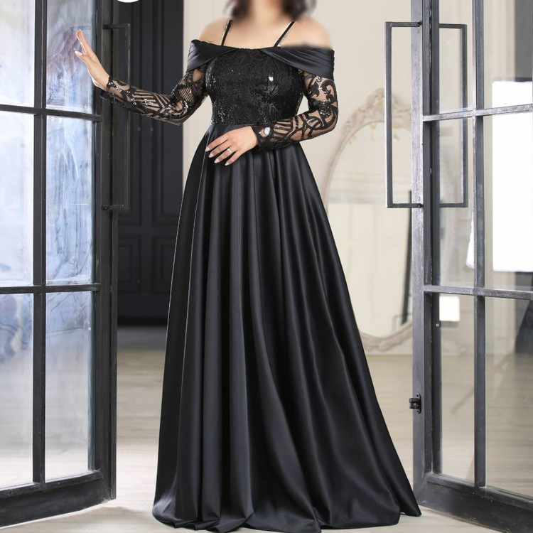 پیراهن مجلسی دکلته پولک و دامن کلوش ساتن آمریکایی 40 تا 50