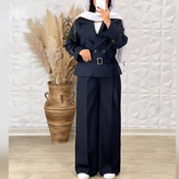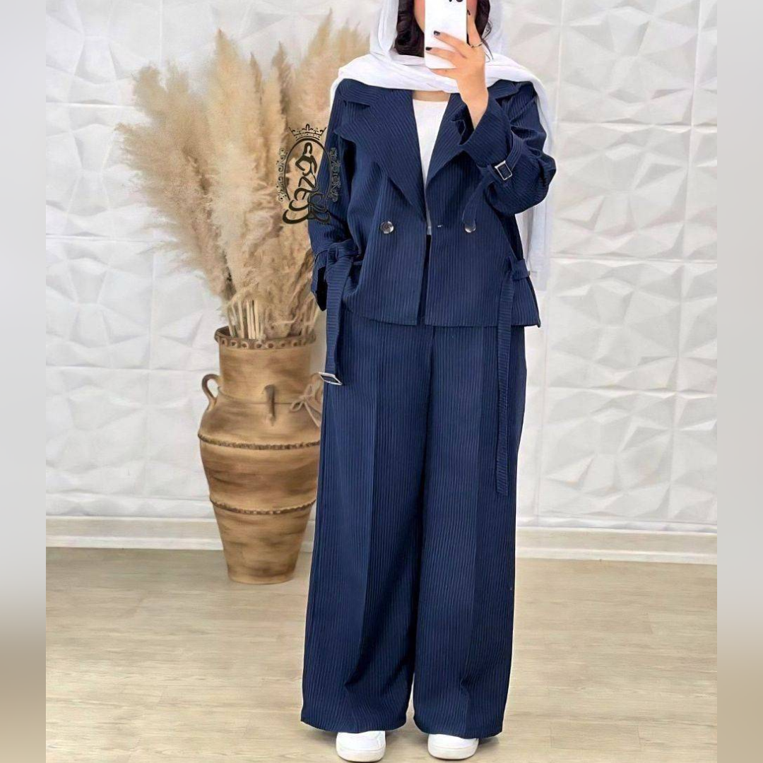 قد کت ۶۰✅️دورسینه ۱۱۰✅️ قد آستین از یقه ۶۶✅️ دور بازو ۴۰✅️ قد شلوار ۱۰۰✅️ دور ران ۶۰✅️ پشت کمر شلوار کشی✅️ شلوار ۲ جیب کاربردی دارد✅️ کت جلو دکمه✅️ آستین بندی سگک دار✅️ کمربند دارد✅️ دکمه های جلوی کت بسته میشود✅️
